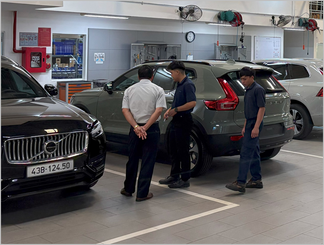 Xưởng dịch vụ của Volvo Car Đà Nẵng vận hành theo tiêu chuẩn nhà sản xuất. Với thiết bị chẩn đoán chuyên dụng và quy trình kỹ thuật nhất quán. Mỗi chiếc xe được tiếp nhận đều có lịch sử sửa chữa – bảo dưỡng cập nhật theo số khung để kỹ thuật viên nắm bắt tình trạng chính xác trước khi bắt đầu công việc. Vật tư, phụ tùng sử dụng là hàng chính hãng, đi kèm hướng dẫn kỹ thuật và thông số mô-men – siết lực tương ứng cho từng hạng mục.